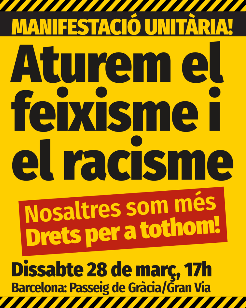 Convocatòria perquè juntes plantem cara a l’odi: el pròxim 28 de març, manifestació unitària contra la ultradreta i el racisme.